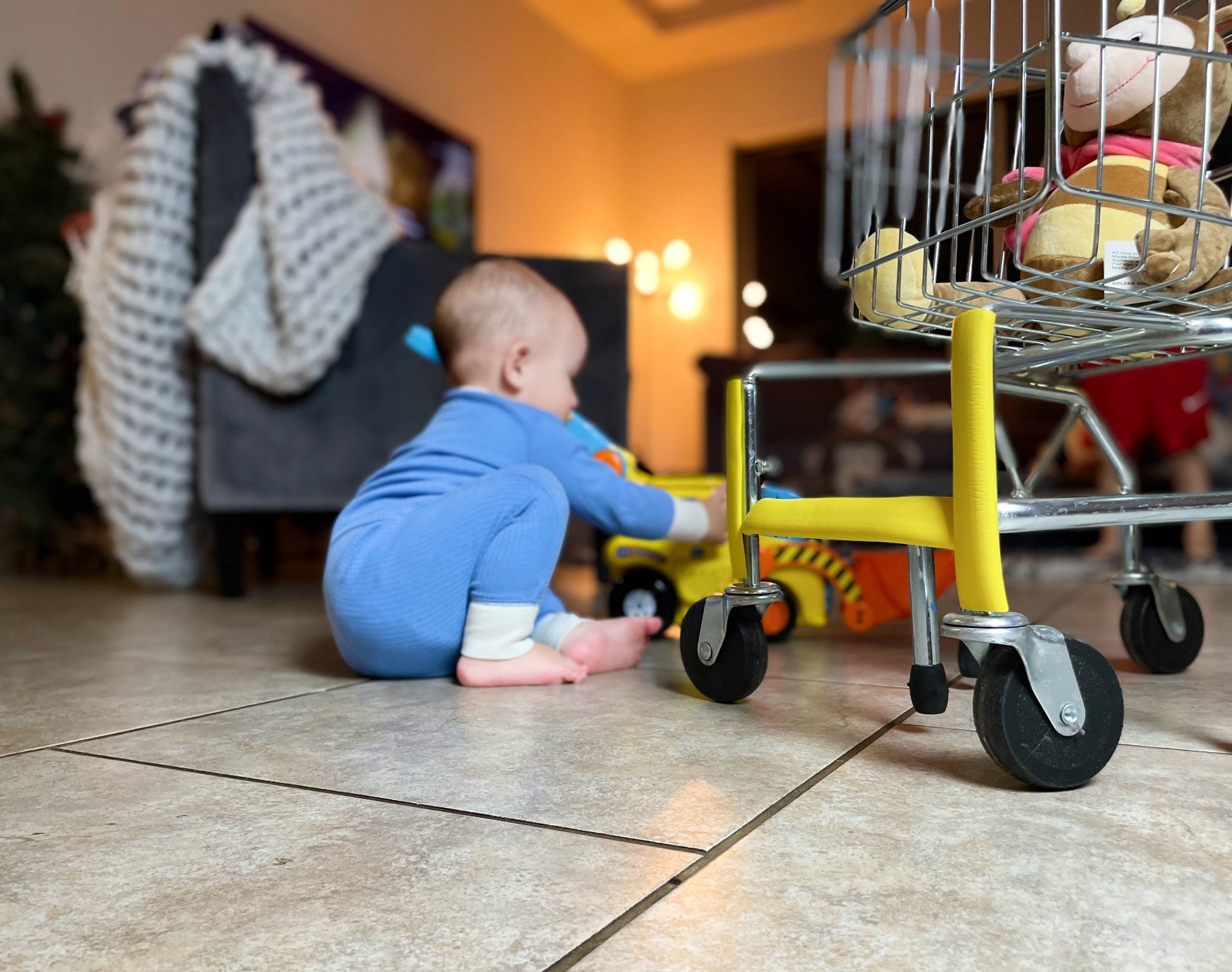 THICK, SOFT RUBBER FOAM PAD: Made from soft & squishy foam with a rubbery texture, our baby bumper strip cushions the edge of baby walking toys, rolling activity walkers with wheels, push carts, strollers, ride on toys & more.